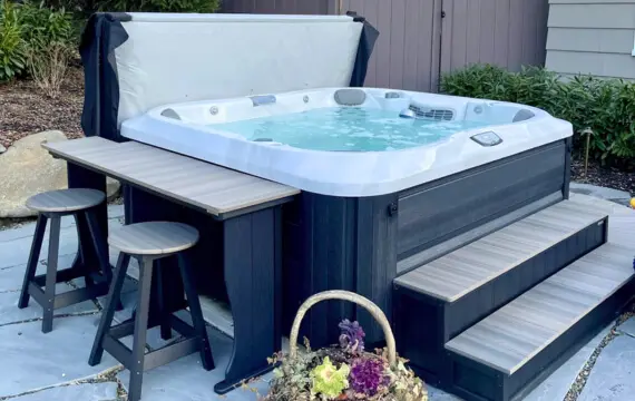 Enhance your hot tub spa area with custom surrounds that add steps, storage, seating, and sleek style to your hot tub setup.