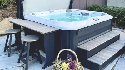 Upgrade your spa space with custom hot tub surrounds featuring built-in steps, bars, and benches—perfect for entertaining or relaxing in comfort and style.